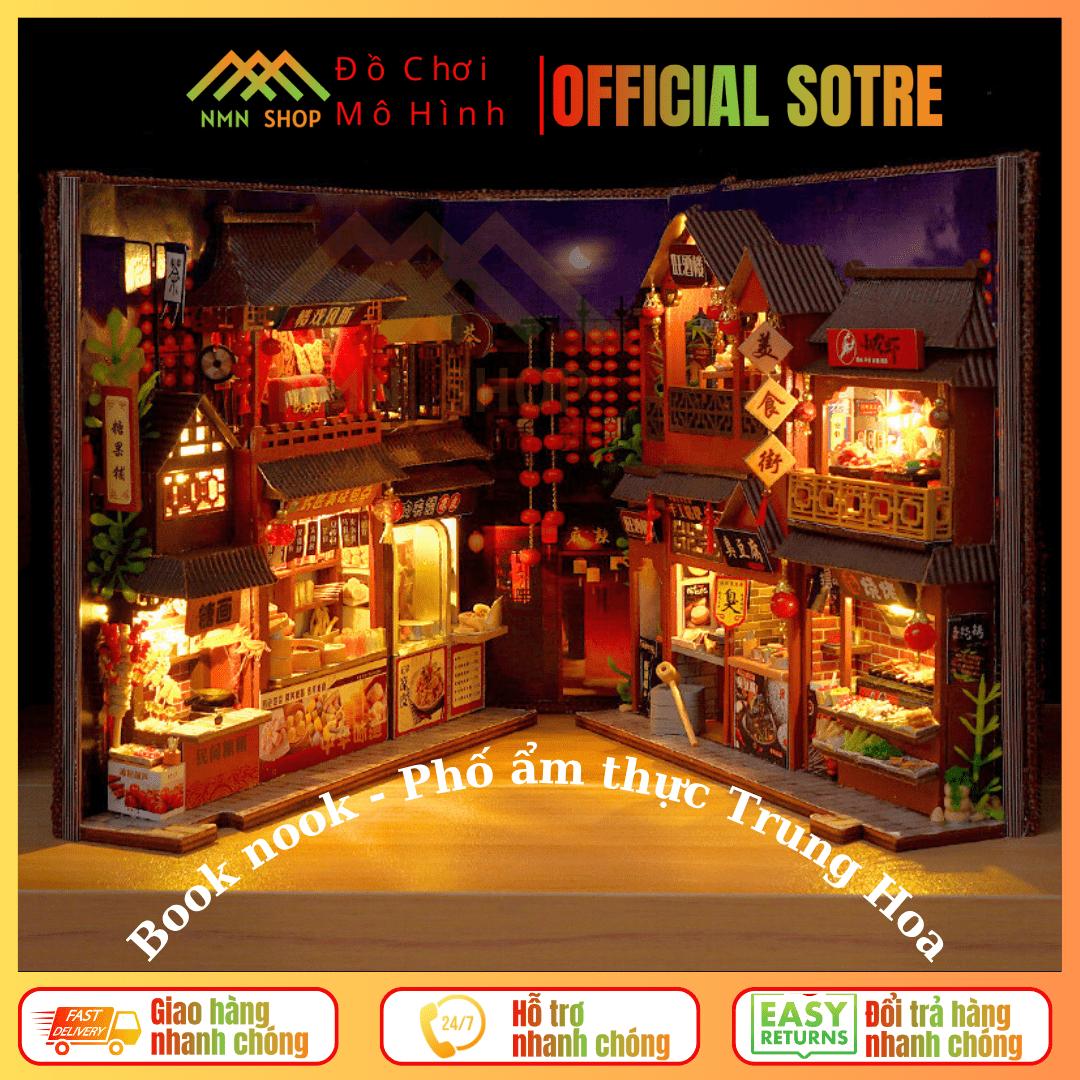 Mô hình 3D Book Nook – Phố ẩm thực Trung Hoa tự Làm bằng gỗ. Trang Trí Kệ sách, quà tặng sinh nhật Book Nook DIY